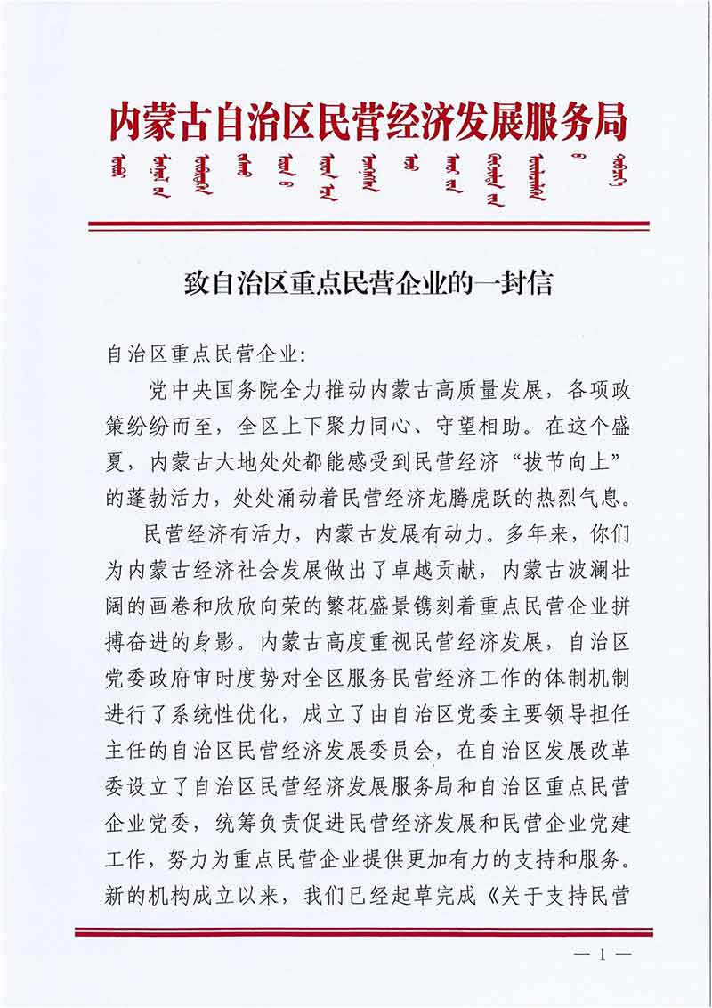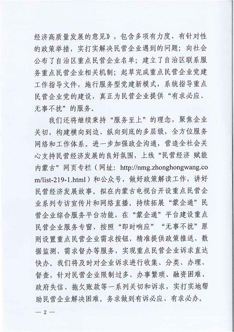 致自治區重點民營企業的一封信