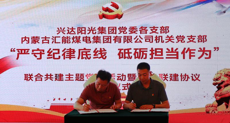 興達(dá)陽光集團(tuán)董事長楊喜林,黨委書記楊寧參加了活動(dòng)并陪同全體黨員參觀了興達(dá)集團(tuán)黨建、企業(yè)展廳,介紹了興達(dá)集團(tuán)的黨建成果和企業(yè)文化?;顒?dòng)中,全體黨員重溫了入黨誓詞,觀看了嚴(yán)守紀(jì)律主題教育片,體驗(yàn)了互動(dòng)式主題教育動(dòng)畫。最后,匯能集團(tuán)黨委與興達(dá)陽光黨委簽署了黨支部黨建聯(lián)建協(xié)議書。