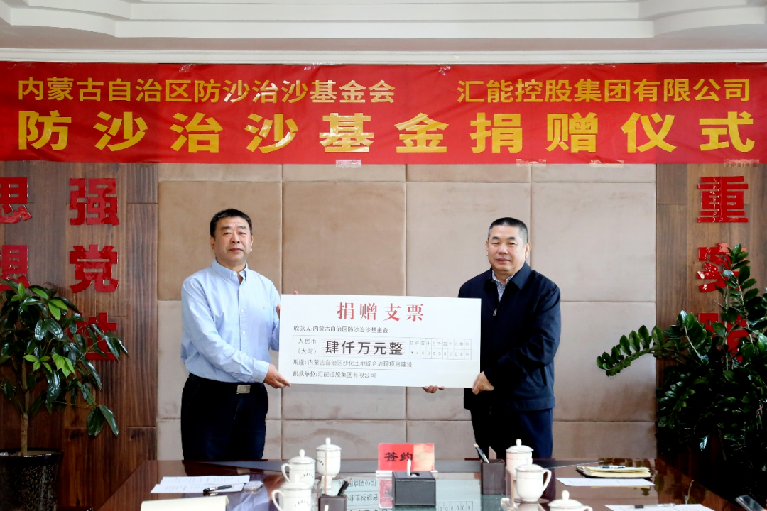 匯能控股集團向內(nèi)蒙古自治區(qū)防沙治沙基金會捐贈資金4000萬元